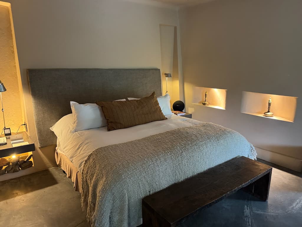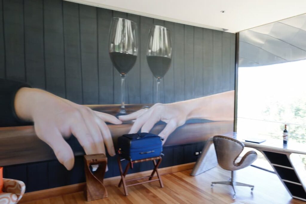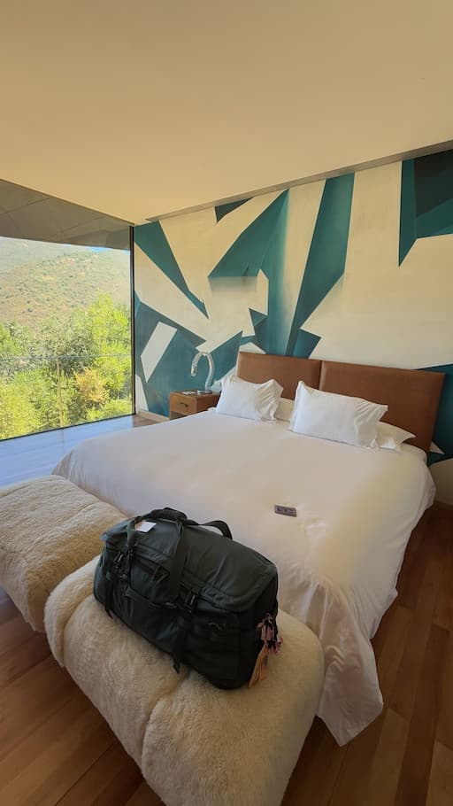 We got a look at Vik Chile Hotel’s uniquely designed guest rooms. Each space essentially served as a gallery of contemporary art with custom furnishings, while still offering modern luxury amenities. It was interesting to see how the hotel’s artistic vision extended from the public spaces into the private accommodations, with each room having its own distinctive character.