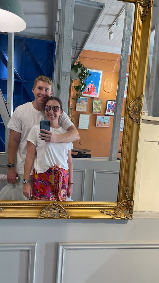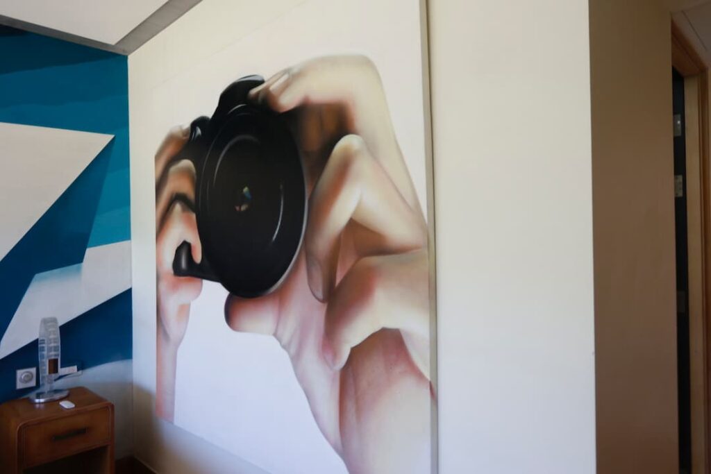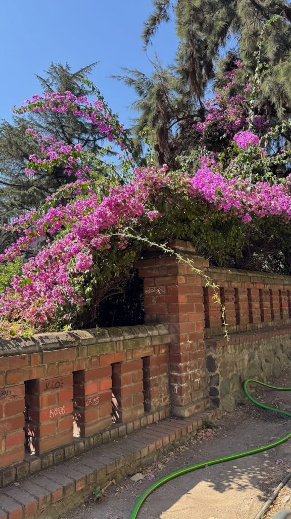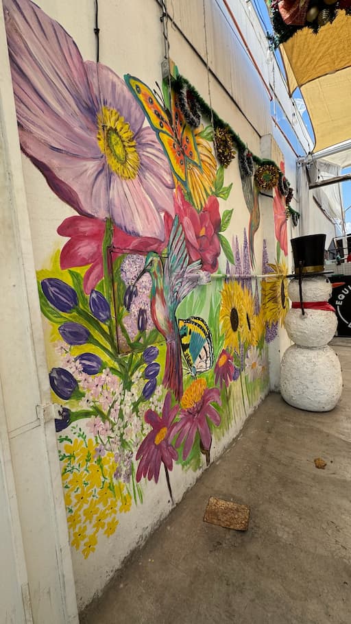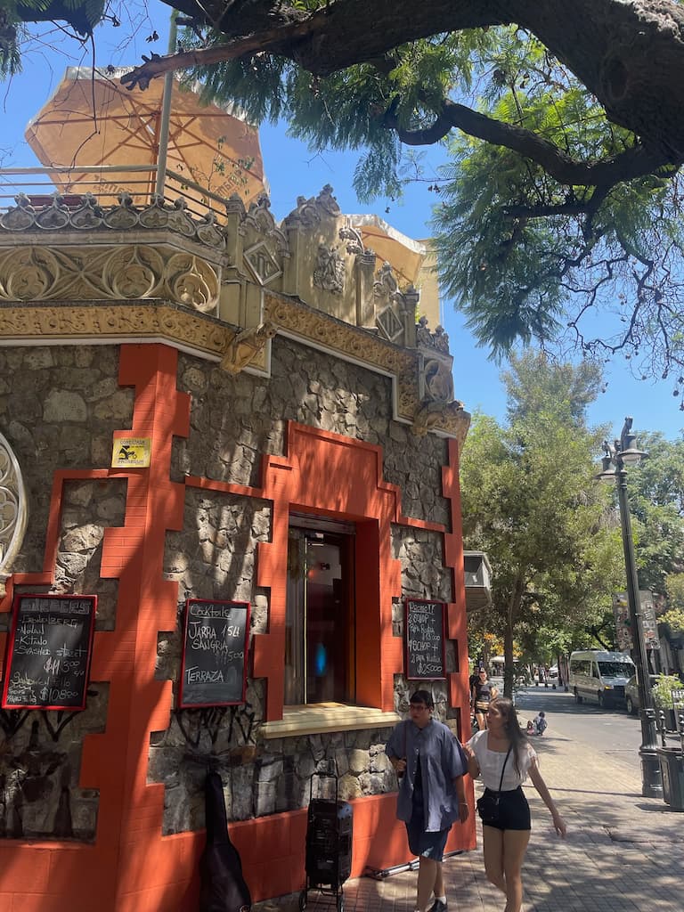 During our exploration of Providencia, we encountered unexpected creative touches that revealed the neighborhood’s artistic character. We stopped at a stylish shop or cafĆ© with artistic dĆ©cor that offered playful mirror reflections, and nearby, we admired a vibrant outdoor mural bursting with colorful flowers, butterflies, and whimsical figures including a surprising snowman. These artistic touches exemplified the neighborhood’s creative spirit and added delightful moments to our urban walk.