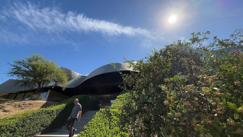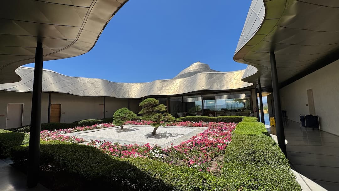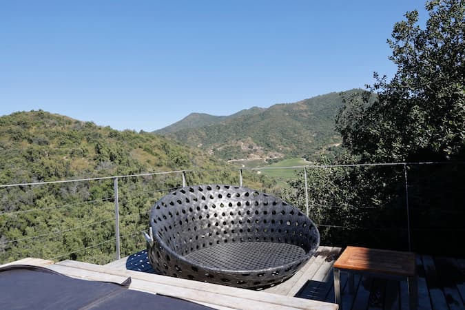 We toured the Vik Chile Hotel’s award-winning architecture and grounds. The property’s bold design harmonizes with the Millahue Valley landscape, and we noticed artistic installations throughout the property. We also learned about the nearby VIK Winery with its distinctive wave-like roof that complements the hotel’s innovative aesthetic. The thoughtful design elements made us appreciate how the buildings enhanced rather than competed with the beautiful natural setting.