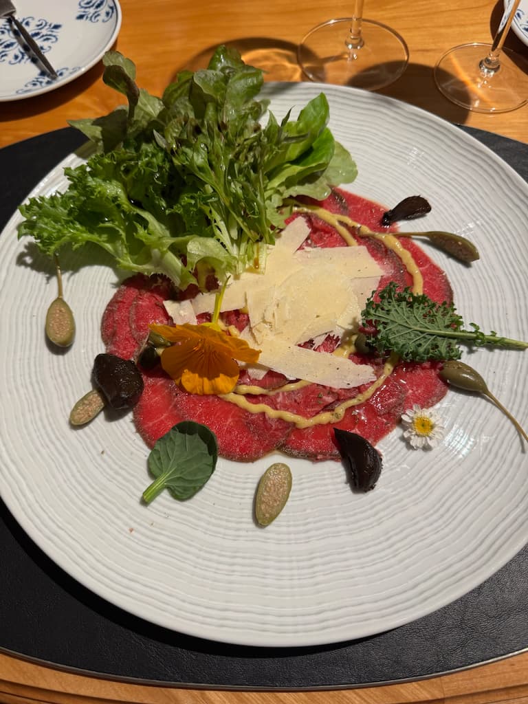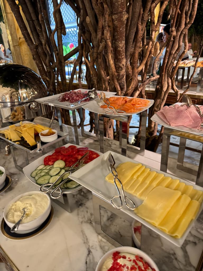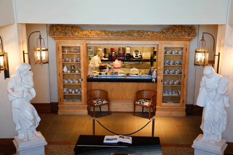 We explored Villa Beluno’s charming boutique cafĆ© with its inviting dining spaces and unique dĆ©cor featuring marble statues and wrought iron details. The blue furnishings and wooden tables created a warm atmosphere throughout. We even got a glimpse behind the scenes in the kitchen, watching the chefs at work and gaining insight into the culinary craftsmanship that goes into the hotel’s renowned dining.