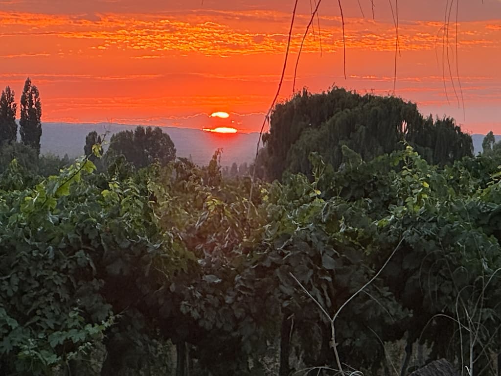 We woke up early to witness a breathtaking sunrise at Cavas Wine Lodge in Mendoza’s Agrelo region. Golden light bathed the sprawling vineyards while snow-capped Andean mountains created a dramatic backdrop in the distance. The peaceful morning atmosphere gave us a perfect final glimpse of Argentina’s premier wine country before our departure.