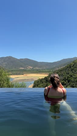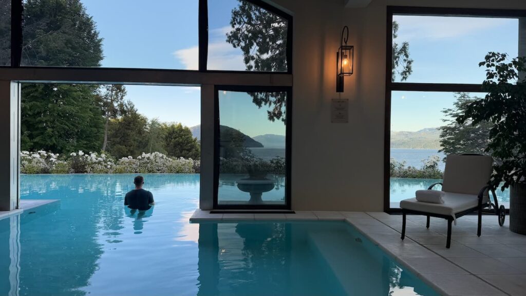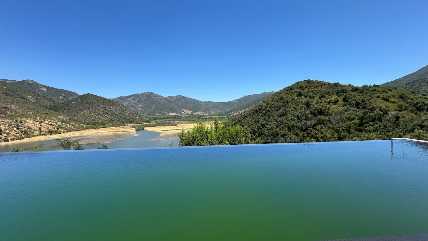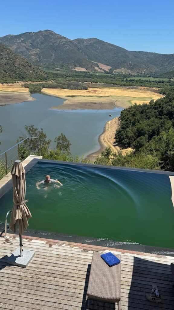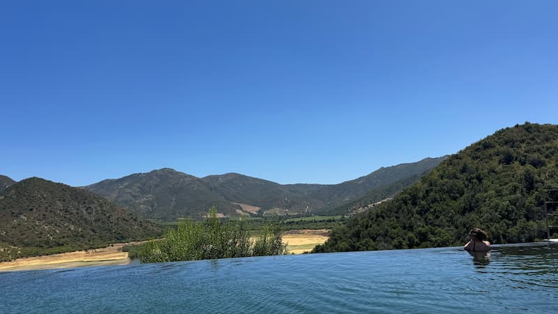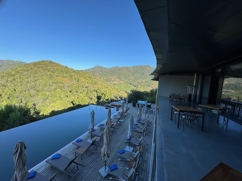 We spent some time at the infinity pool at Vik Chile Hotel, which provided a serene afternoon retreat. While floating in the refreshing water, we enjoyed light snacks and took in the breathtaking panoramic mountain views that stretched across the Chilean landscape. The seamless edge of the pool created the illusion of extending right into the mountains.