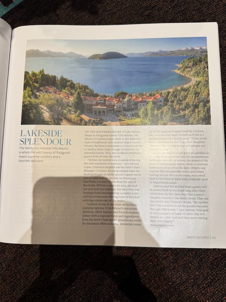 We spent some quiet time in the evening reviewing information about the region’s lakeside attractions. Browsing through a publication featuring ‘Lakeside Splendour’ showed us panoramic views of charming villages nestled among green hills, giving us inspiration for our upcoming explorations of Argentina’s picturesque landscapes.