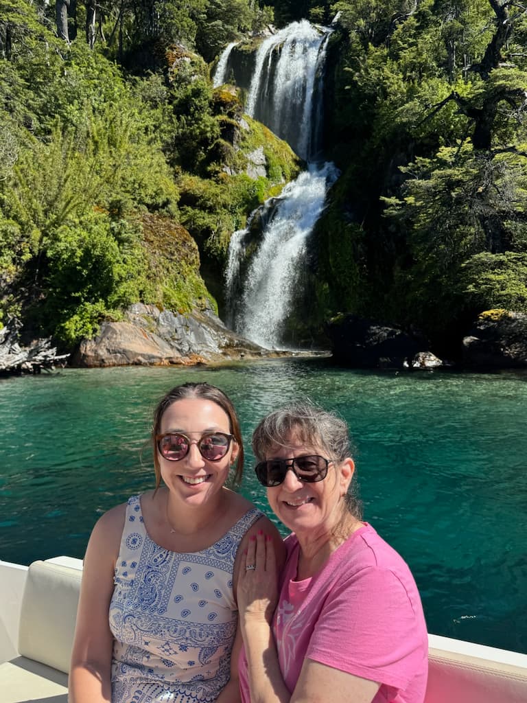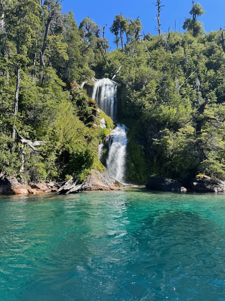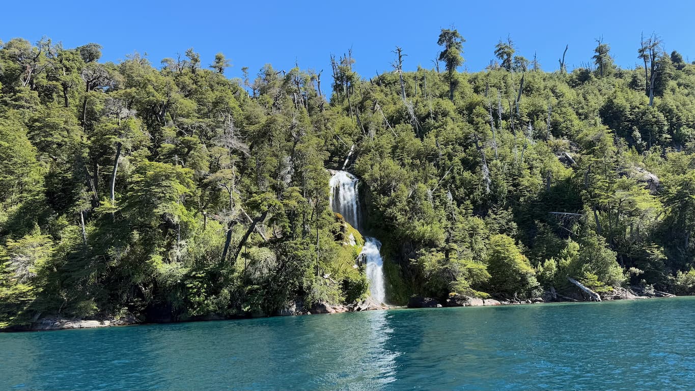 Our cruise continued to the spectacular Cascada de los CÔntaros, where we had amazing photo opportunities against the backdrop of cascading water and rocky cliffs. The boat navigated quite close to the falls on Lago Nahuel Huapi, allowing us to get intimate views of this natural wonder in the Puerto López area. The sound of the rushing water added another dimension to the experience.