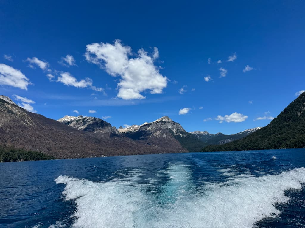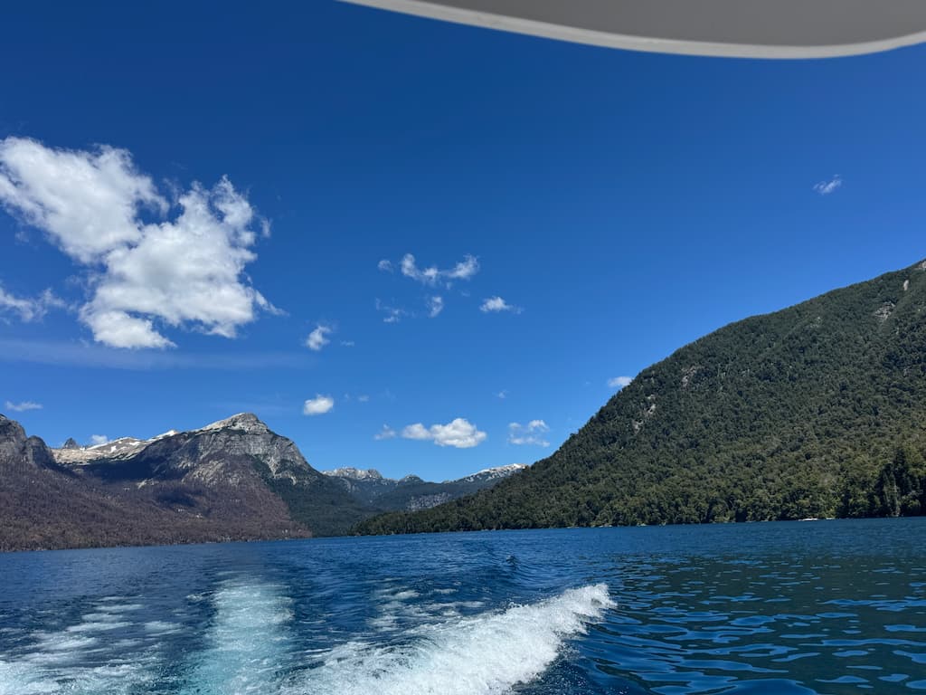 Our scenic boat cruise across the tranquil Lago Nahuel Huapi revealed majestic mountain ranges in every direction. We watched as snow-capped peaks reflected in the crystal-clear waters, and the refreshing breeze enhanced the spectacular panoramic views. The pristine waters of this Argentine lake created the perfect setting for photos against a stunning natural backdrop.