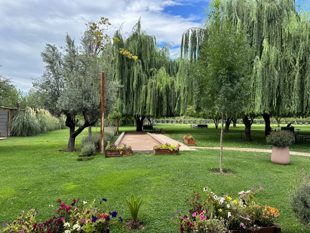 We spent part of the afternoon leisurely exploring the beautiful grounds of Cavas Wine Lodge. Following winding paths through manicured gardens, we discovered tranquil lounging areas and caught glimpses of the luxurious accommodations, all set against the backdrop of Mendoza’s wine country. The property was thoughtfully designed to complement its natural surroundings.