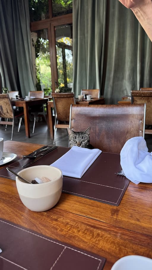 We took a leisurely morning walk through the lush vineyards of Cavas Wine Lodge. The peaceful grounds allowed us to appreciate the meticulously maintained vines stretching across the estate. We concluded our vineyard experience with an alfresco breakfast amid this beautiful setting, which included an unexpected but delightful visit from a friendly local cat.