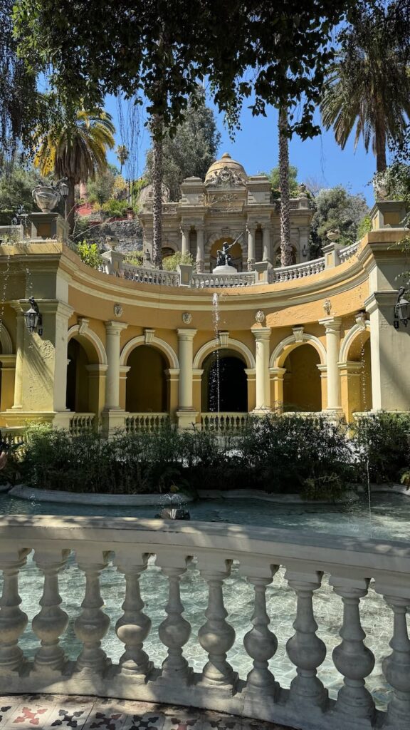 We climbed Cerro Santa Lucia, a verdant escape rising from central Santiago with terraced gardens and historic stone structures. Following the winding pathways through the landscaped grounds, we reached viewpoints that rewarded us with sweeping panoramas of Santiago’s urban landscape set against the majestic Andes mountains in the distance. The park provided a refreshing break from the bustling city below.