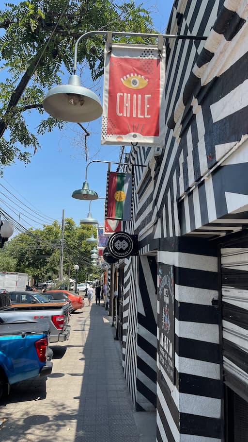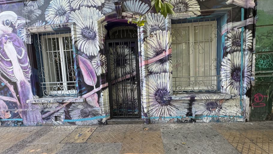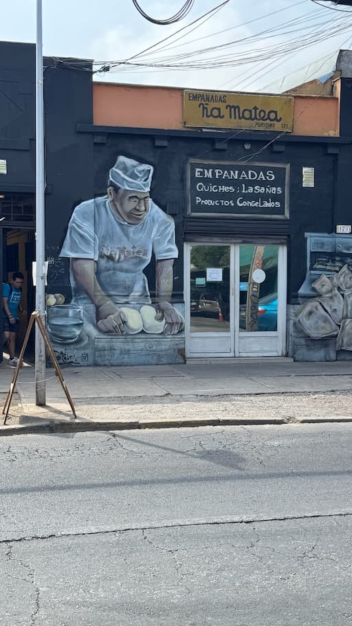 We started our day exploring Recoleta’s vibrant street art scene with its colorful murals throughout the neighborhood. Our journey began at the eye-catching Empanadas Ʊa Matea storefront with its distinctive chef artwork, then continued through streets showcasing diverse murals featuring intricate floral designs and cultural themes that reflected Chile’s artistic heritage. The neighborhood had a really distinct creative energy.