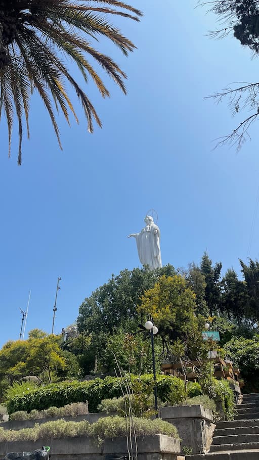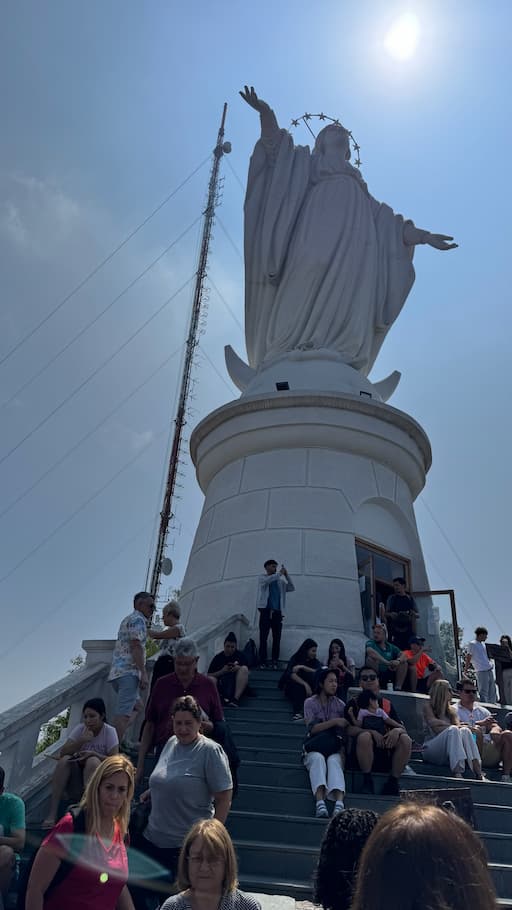 At the summit of Cerro San Cristóbal, we found the iconic 14-meter Virgin Mary statue with arms outstretched, blessing the city below. We spent time at several viewpoints that offered breathtaking panoramas of Santiago with the Andean mountains rising in the distance. The hilltop sanctuary included religious monuments and peaceful terraces, creating a perfect blend of spiritual significance and natural beauty at this beloved Santiago landmark.