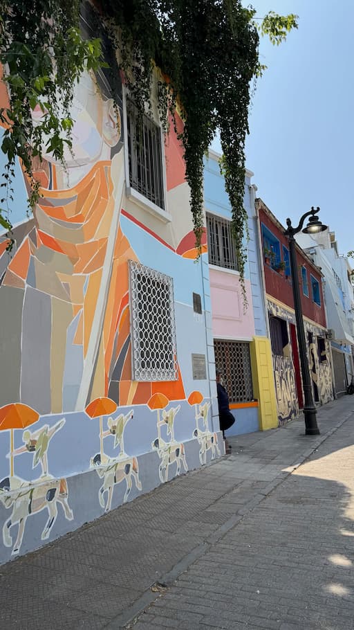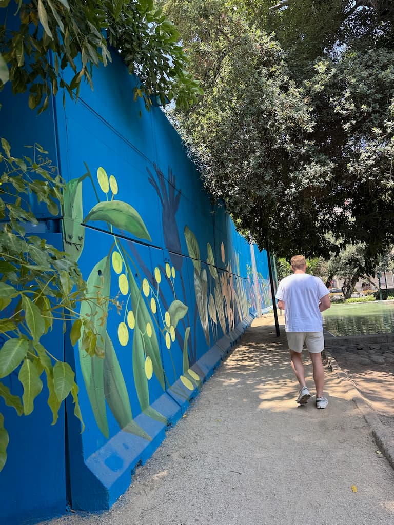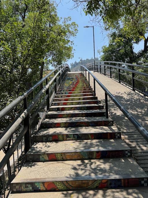 We spent part of the afternoon at Parque Balmaceda, which serves as the backdrop for Providencia’s impressive street art collection. Colorful murals transformed ordinary walls into extraordinary canvases, while decorated staircases created unexpected artistic moments. Our walk included El Teatrillo’s creative displays, the serene Puente JaponĆ©s (Japanese Bridge), and the cultural offerings of Mercado Mapuche, showing us Santiago’s commitment to public art and cultural expression.