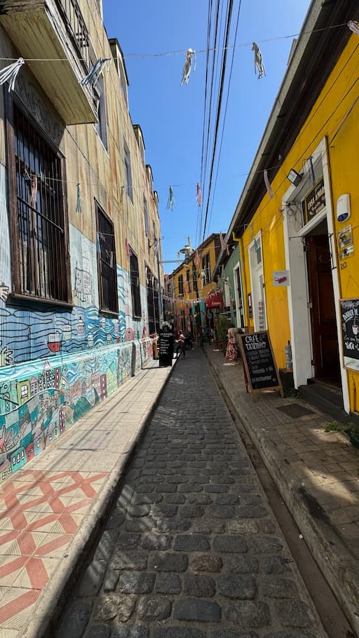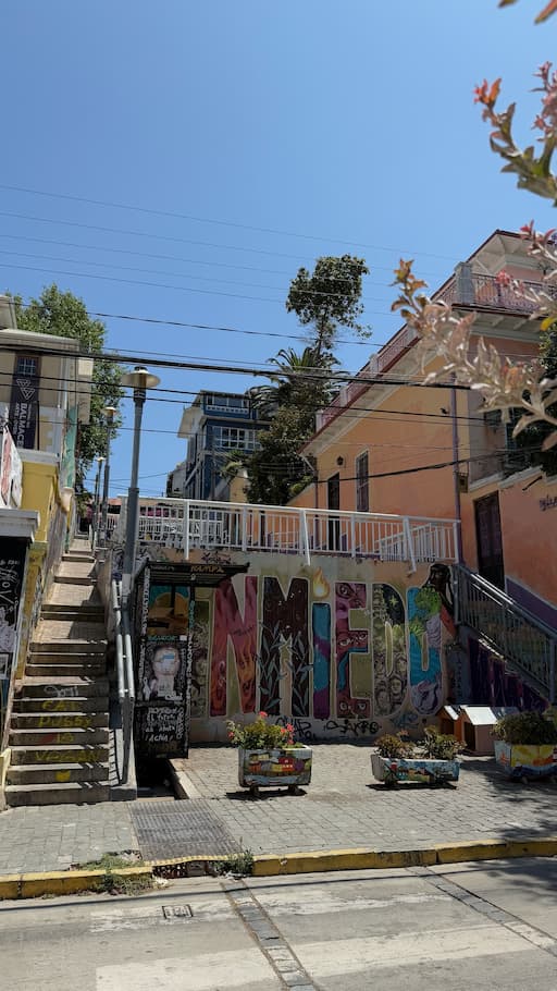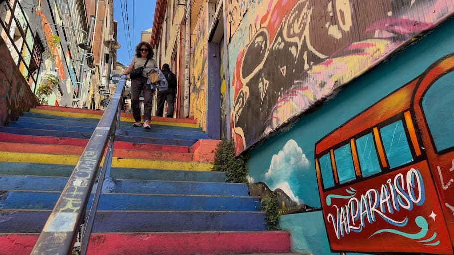 We spent the afternoon exploring ValparaĆ­so’s famous hills, Cerro Alegre and Cerro Concepción, where we discovered the city’s UNESCO World Heritage charm. Our route included the elegant Baburizza Palace with its European-inspired design, the historic Paseo Yugoslavo, and the whimsical Piano Staircase. We continued to the Lutheran Church of the Holy Cross dating from 1897, the upper station of the historic Funicular Conception Hill with its spectacular views, the picturesque Paseo Atkinson, the hidden gem of Pasaje Galvez, and vibrant murals of the Open Air Museum. These hills showcased the unique blend of colorful street art and preserved historic architecture that has made ValparaĆ­so famous worldwide.