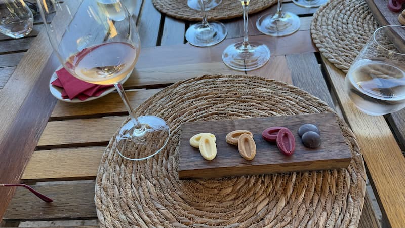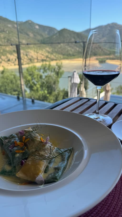 At ViƱa VIK, we enjoyed an extended lunch experience in a charming outdoor setting. The meal featured thoughtful wine tastings complemented by chocolate pairings, all while taking in the spectacular backdrop of rolling vineyard views. The combination of flavors and scenery made for a memorable dining experience in Chile’s wine country.