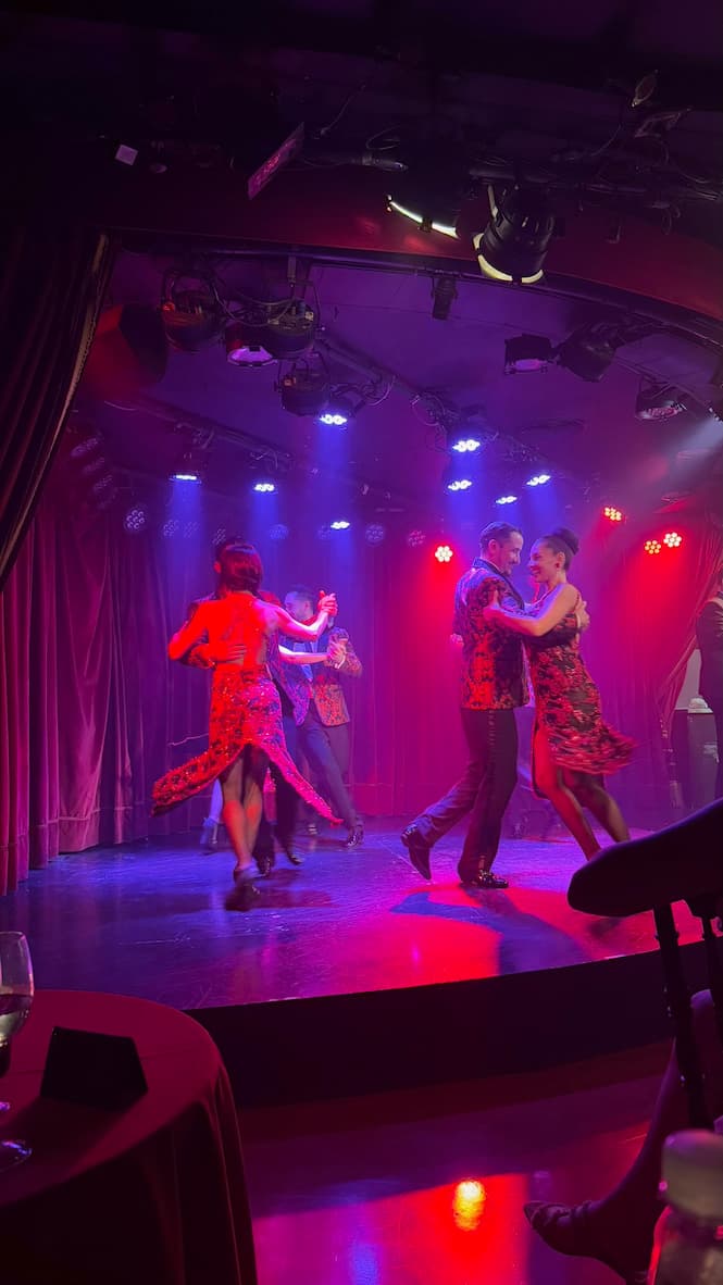 Our day concluded with a tango show at the Faena Hotel. The dancers performed in elaborate costumes with impressive technical precision and emotional intensity. Watching this traditional Argentine dance performed live was a captivating cultural experience and the perfect ending to our first day in Buenos Aires.