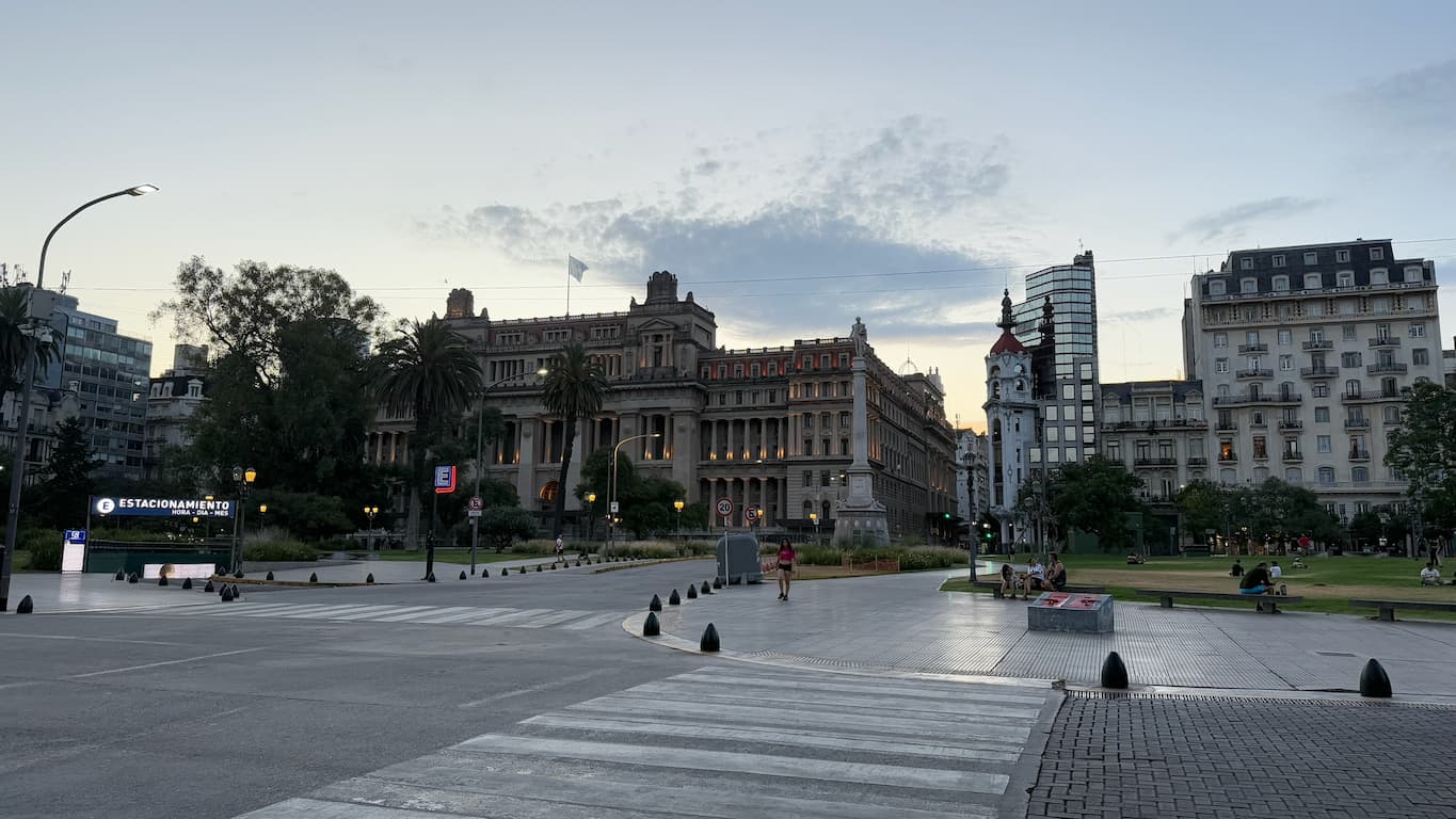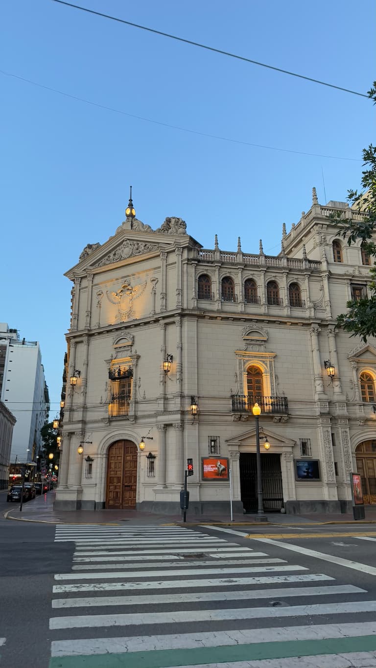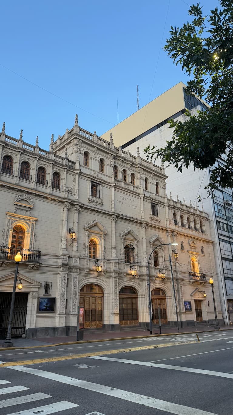 As night fell over Buenos Aires, we took an evening walk through the downtown area to see the city’s impressive architecture illuminated by ambient lighting. The neoclassical details of historic buildings glowed warmly against the darkening sky, including the Palacio de Justicia and Teatro Cervantes. The blend of modern urban elements and classic design showed us why Buenos Aires is often called the ‘Paris of South America.’