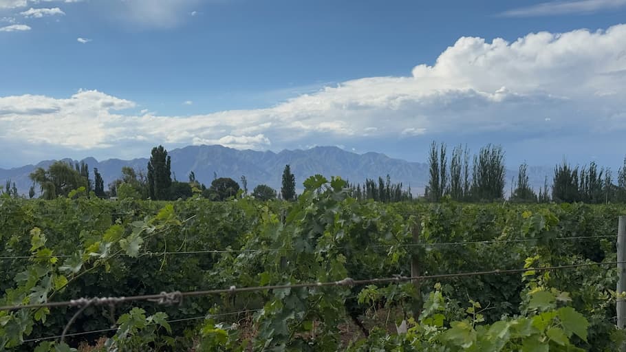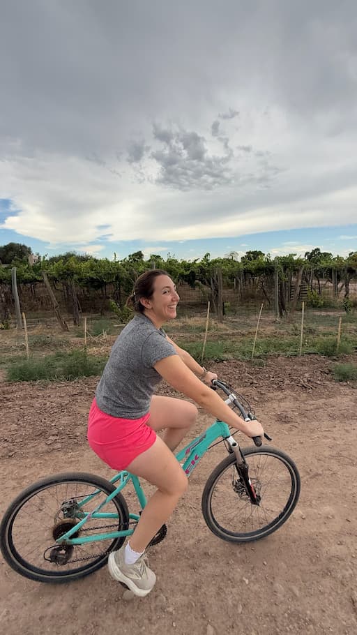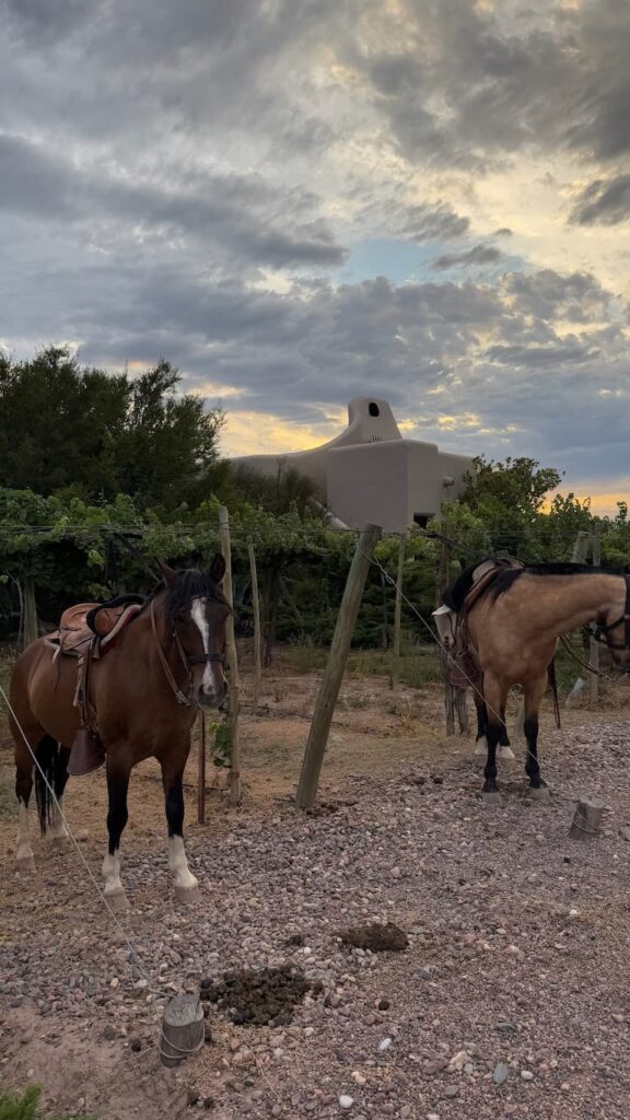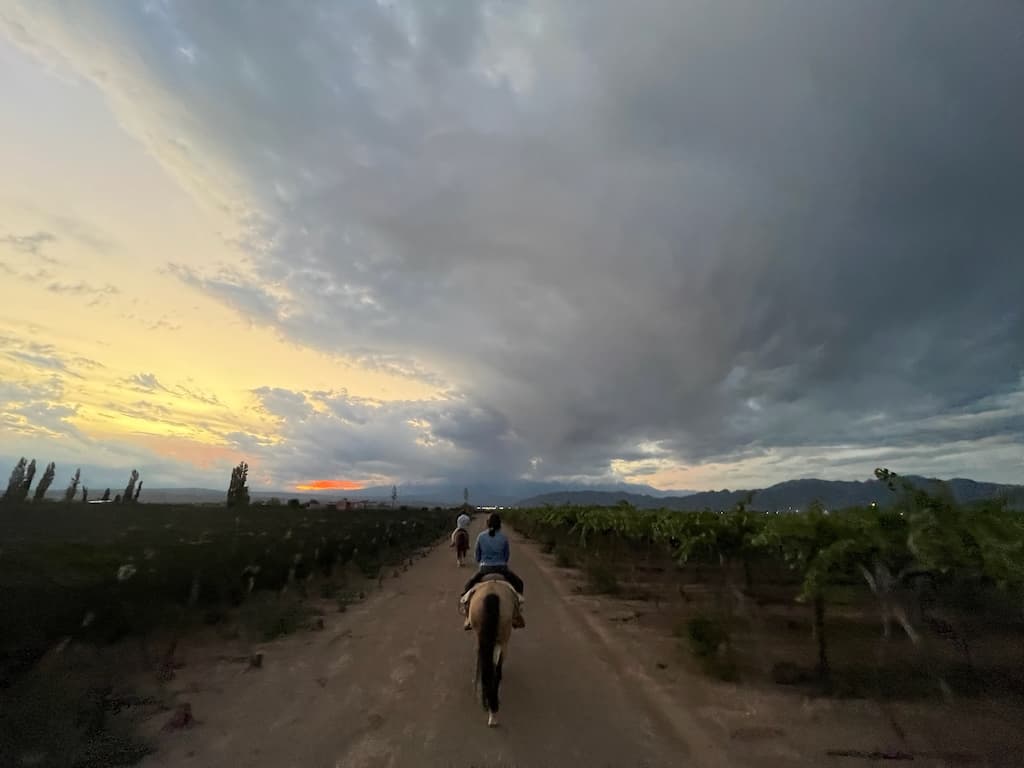 We enjoyed an invigorating bike ride through the vineyard paths of Cavas Wine Lodge. As we pedaled along, we admired the dramatic skies overhead and the seemingly endless rows of meticulously tended vines. The ride gave us an intimate connection with Mendoza’s celebrated wine landscape and helped us appreciate the scale and beauty of the vineyard.
