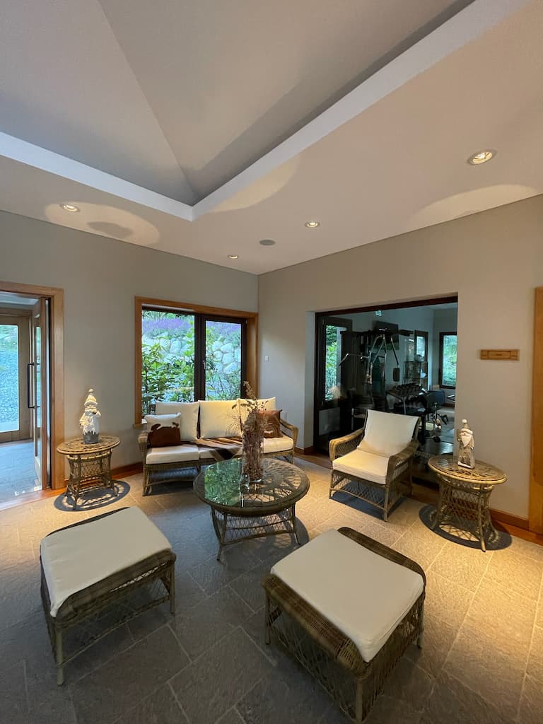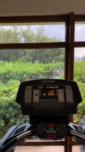 We took some time to enjoy Cavas Wine Lodge’s wellness facilities for a bit of rejuvenation. This included visiting the well-appointed fitness center and spending time in the serene pool area, both thoughtfully integrated into the property’s beautiful garden setting. The peaceful environment was perfect for unwinding after our travels.