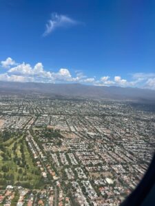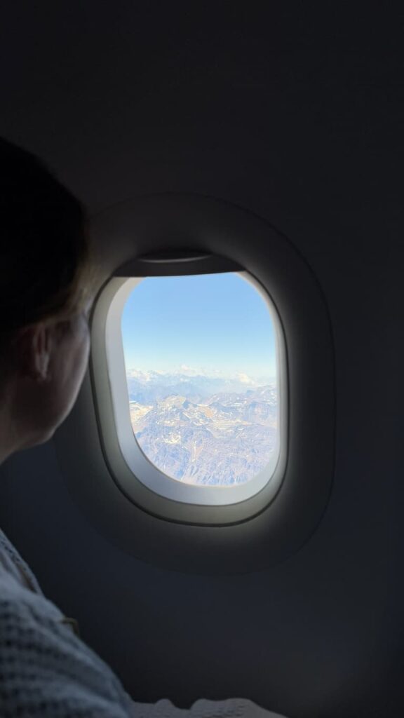 Our flight from Bariloche to Mendoza revealed Argentina’s diverse landscapes from above. The journey offered spectacular views as we passed over Nahuel Huapi Lake and the rugged Andean mountain range. We watched through the windows as the scenery gradually transitioned from Patagonia’s lakes region to the distinctive terrain of Mendoza’s wine country.