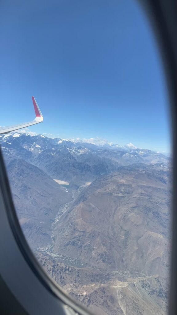 Our journey from Mendoza to Santiago featured a spectacular aerial crossing of the Andes Mountains. From the aircraft windows, we enjoyed breathtaking views of jagged, snow-capped peaks, including the towering Aconcagua, which we learned is the highest mountain in the Americas. After this stunning visual experience, we landed at Santiago International Airport ready to explore a new country.