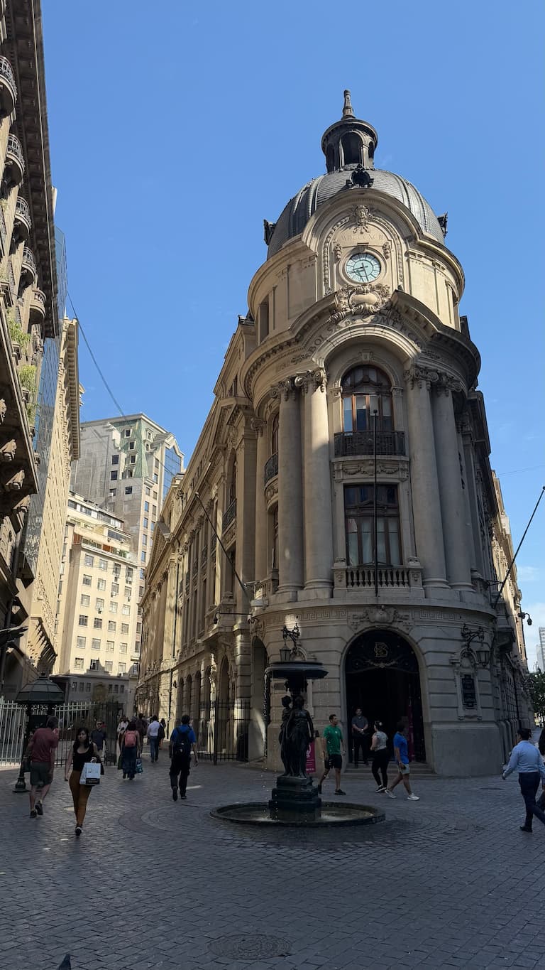 We explored the historic heart of Santiago around Plaza de Armas, where we saw colonial architecture standing alongside more modern urban elements. Our tour extended to nearby Barrio La Bolsa with its European-influenced buildings, the iconic STGO Monument where we stopped for photos, and the impressive neoclassical Palacio de La Moneda, Chile’s presidential palace. We even enjoyed a refreshing ice cream stop that provided a sweet interlude during our exploration.