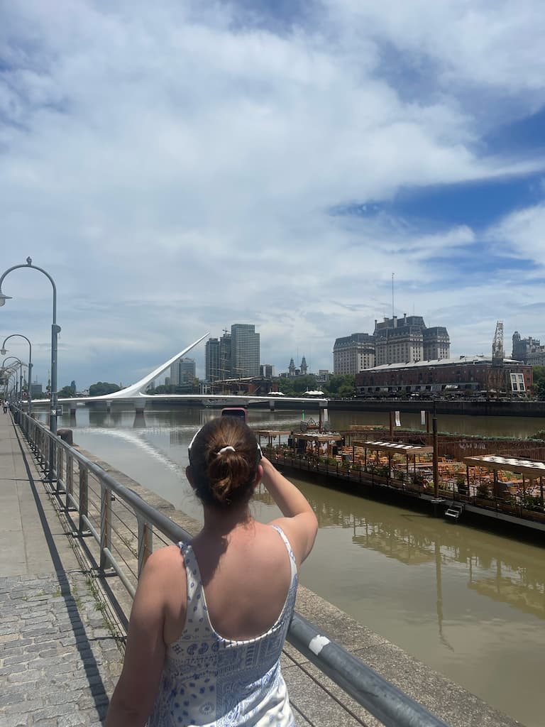In the afternoon, we explored the iconic Puerto Madero area with its distinctive sail-like bridge and modern waterfront development. Walking through this revitalized docklands district, we admired how Buenos Aires has blended contemporary architecture with historic port buildings that have been transformed into upscale restaurants and offices. The contrast between old and new created an interesting urban landscape.