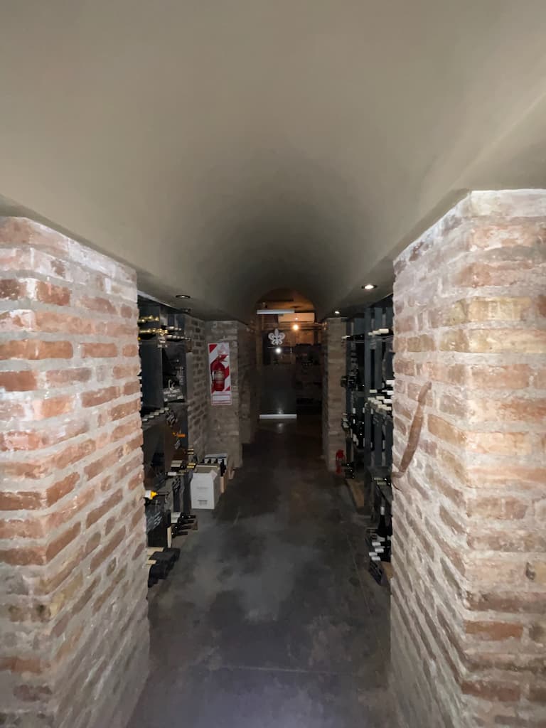 The distinctive rustic exposed brick walls stood out as we ventured to and from the cellar.